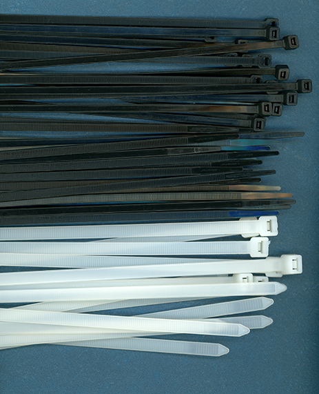 We offer all types of zip ties from as short as 4 inches long to as long as 60 inches long in several different colors. Our ties range in tensile strength from 18 lbs to 175 lbs. Our heavy-duty cable ties range in strength from 120 to 175 lbs; these ties are 5/16” wide compared to standard cable ties, which are 3/16” wide. Our most unique product is the 75-lb cable tie - it has the same dimensions and price as a 50-lb tie; however, our design features ridges on the top and bottom of the tie that increase the strength of the tie by 25 lbs using the same amount of nylon. Our ties are made of high quality nylon 6/6 and most of our ties are UL-listed. Besides standard cable ties, we also offer grade 304 stainless steel metal cable ties, beaded cable ties, plenum cable ties, handcuff cable ties, double loop cable ties, screw mount cable ties, and fuel hose cable ties. For extra-heavy-duty applications, we also offer options up to 350-lbs tensile strength.